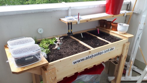 Some time ago I decided to use my balconies more.That's why I bought a raised bed and I am now busy with it ...