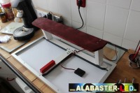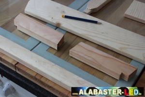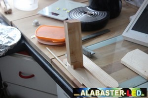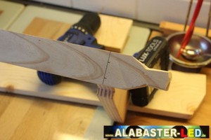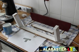Die Basisteile bereitete ich in der Arbeit an der Kreissäge vor.