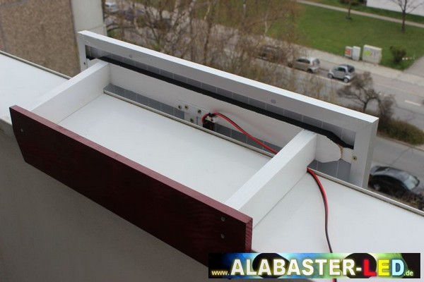 Da es um einiges größer ist, mußte ich es an die Balkonbrüstung hängen. Dazu brauchte es wieder einen gesonderten Halter.