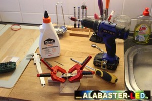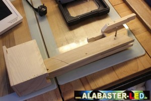 Die Basisteile bereitete ich in der Arbeit an der Kreissäge vor.