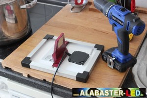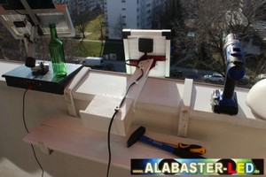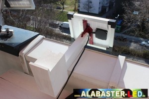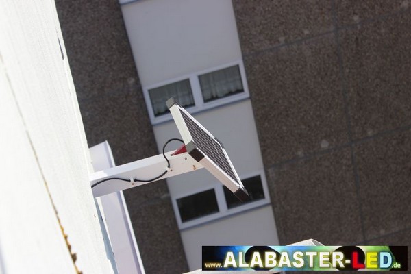 Da die Öffnung im Balkon nur 13cm beträgt mußte ich der Aufnahme ein Gelenk einbauen, damit ich das Panel durch die Öffnung schieben konnte.