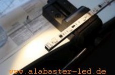 Zuerst hebe ich den LED-Streifen in fünf einzelne Meter-Stücke geschnitten, die ich dann auf ein Aluminium-