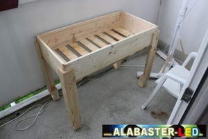 Das Hochbeet entstand aus lauter Abfallholz aus der Arbeit.