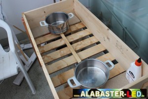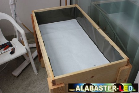 Ich mußte natürlich etwas Zeit für das Sammeln aufbringen, aber dafür habe ich bis auf die Schrauben kein Geld benötigt. Die Folie und das Flies bekam ich ebenfalls von netten Kollegen aus der Arbeit!